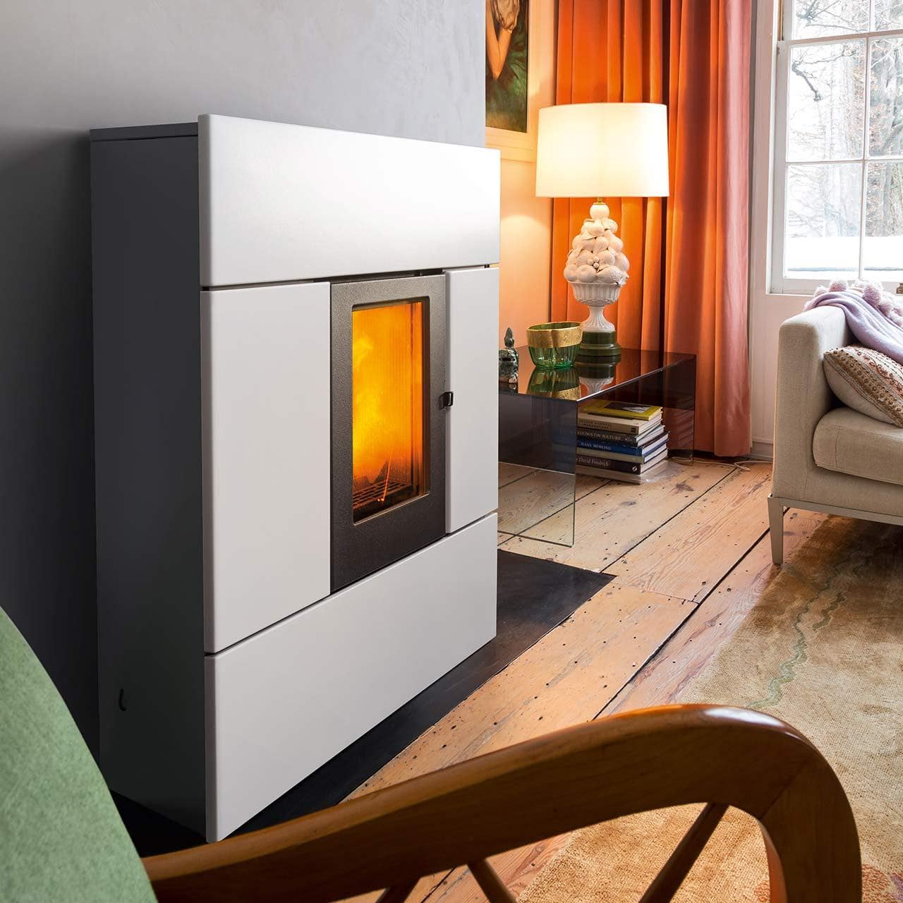In engen RäumlichkeitenAufgrund der sehr geringen Tiefe eignet sich dieser Pelletofen besonders für die Installation in Fluren oder kleinen Räumen.
