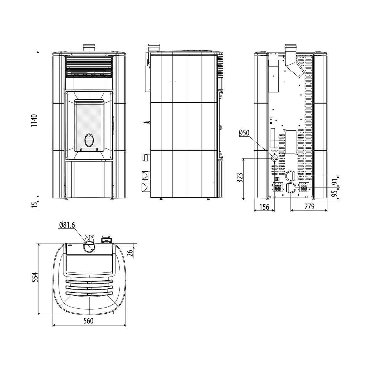 - Pelletofen mit Stahlkorpus, Top und Außenseiten aus Keramik
