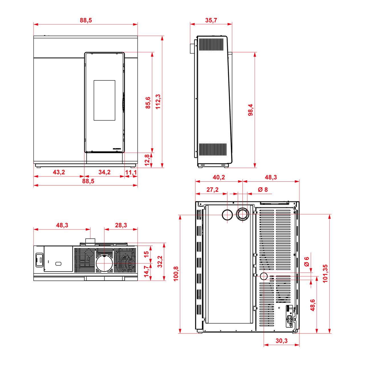 - Raumluftunabhängiger platzsparender Ofen mit oberem koxialem Rauchausgang