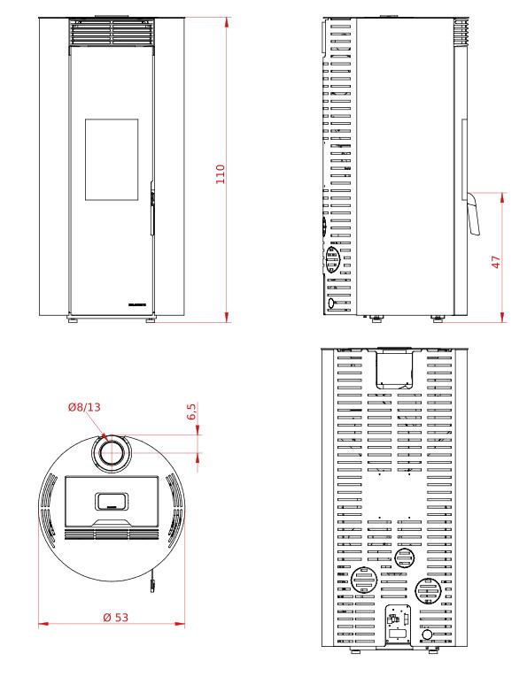 Koaxial-Rauchrohranschluss nach obenDie Öfen mit koaxialem Rauchrohranschluss sind für die Installation mit Luft-Abgas-Systemen konzipiert. |