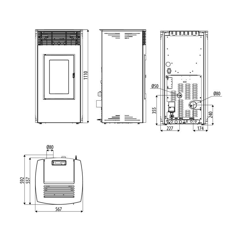 - Fassungsvermögen des Pelletbehälters: 40 l