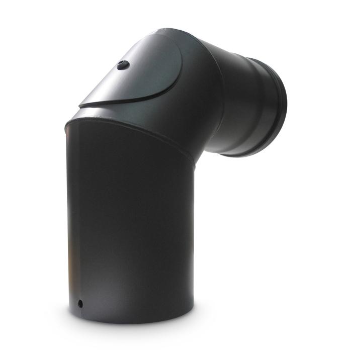 Pelletrohr Bogen 100 mm 90° Schwarz mit Tür Pellet Ofenrohr Knie