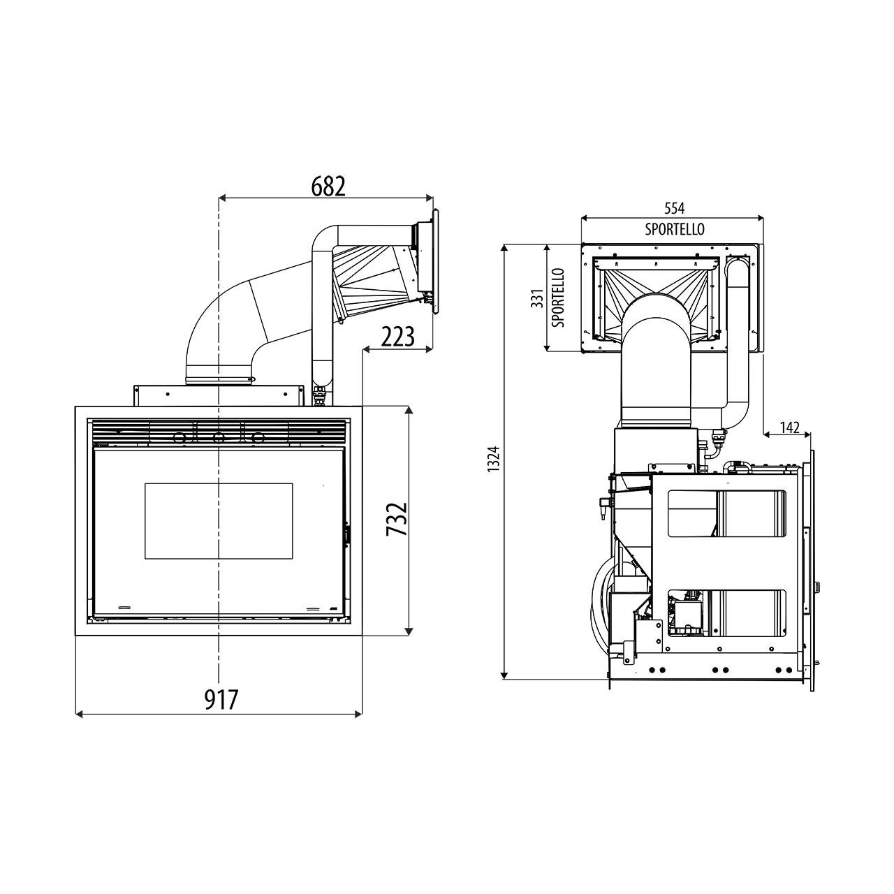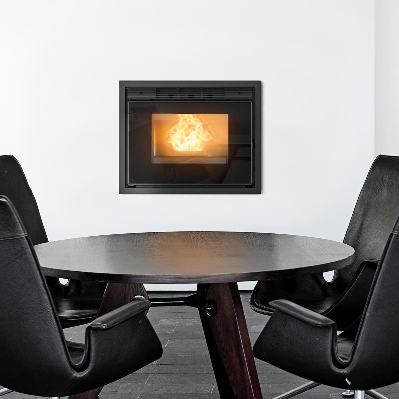 Pellet Kamineinsatz MCZ Vivo 90 Hydro 24 M1: wasserführender Heizkamin im Panoramaformat.