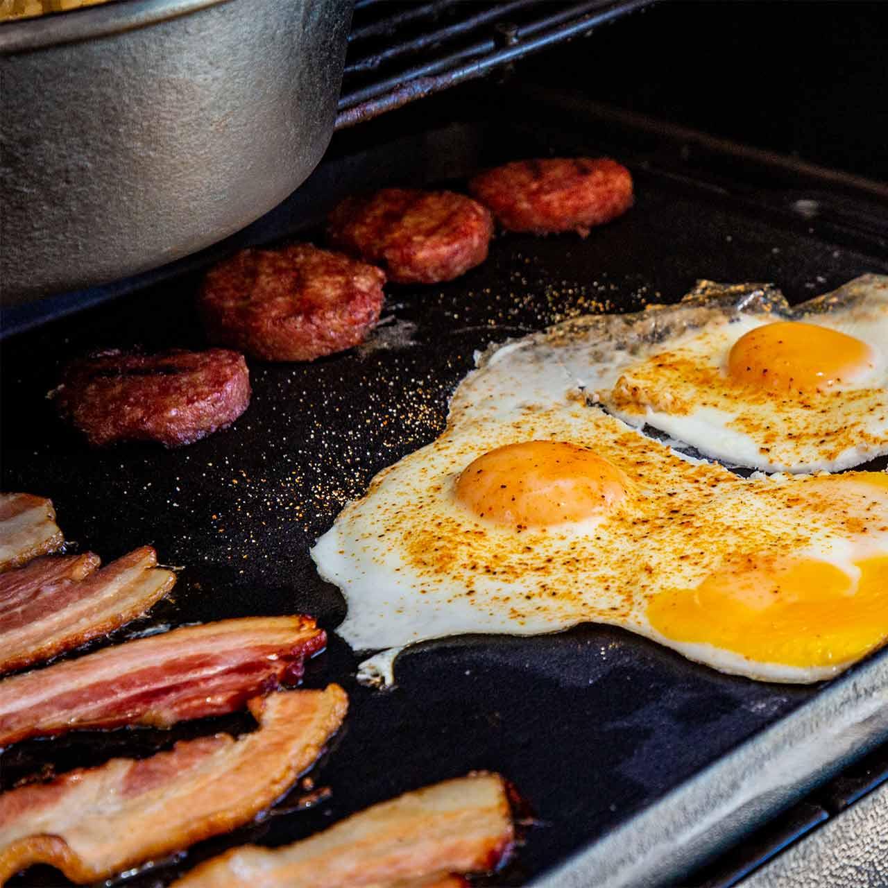 Pit Boss Gusseisen Grillplatte: perfekte Hitzeverteilung am Grillgut.