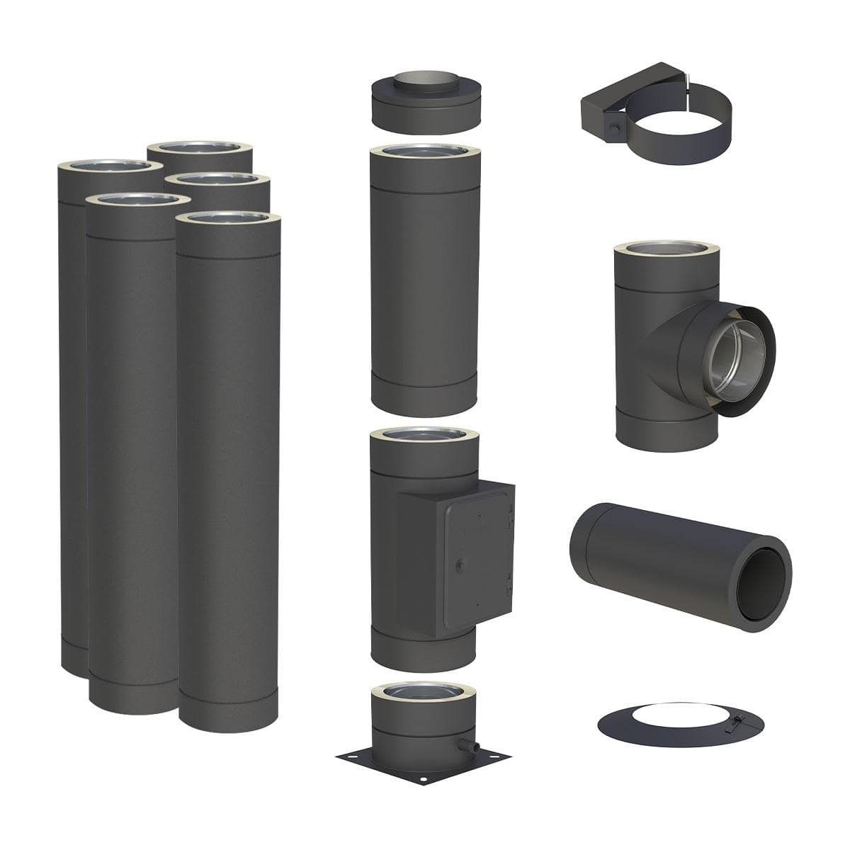 5 m Edelstahlschornstein Bausatz doppelwandig Jeremias DW-BLACK Ø 130 mm - Montage: Boden - Wandabstand: 50 mm