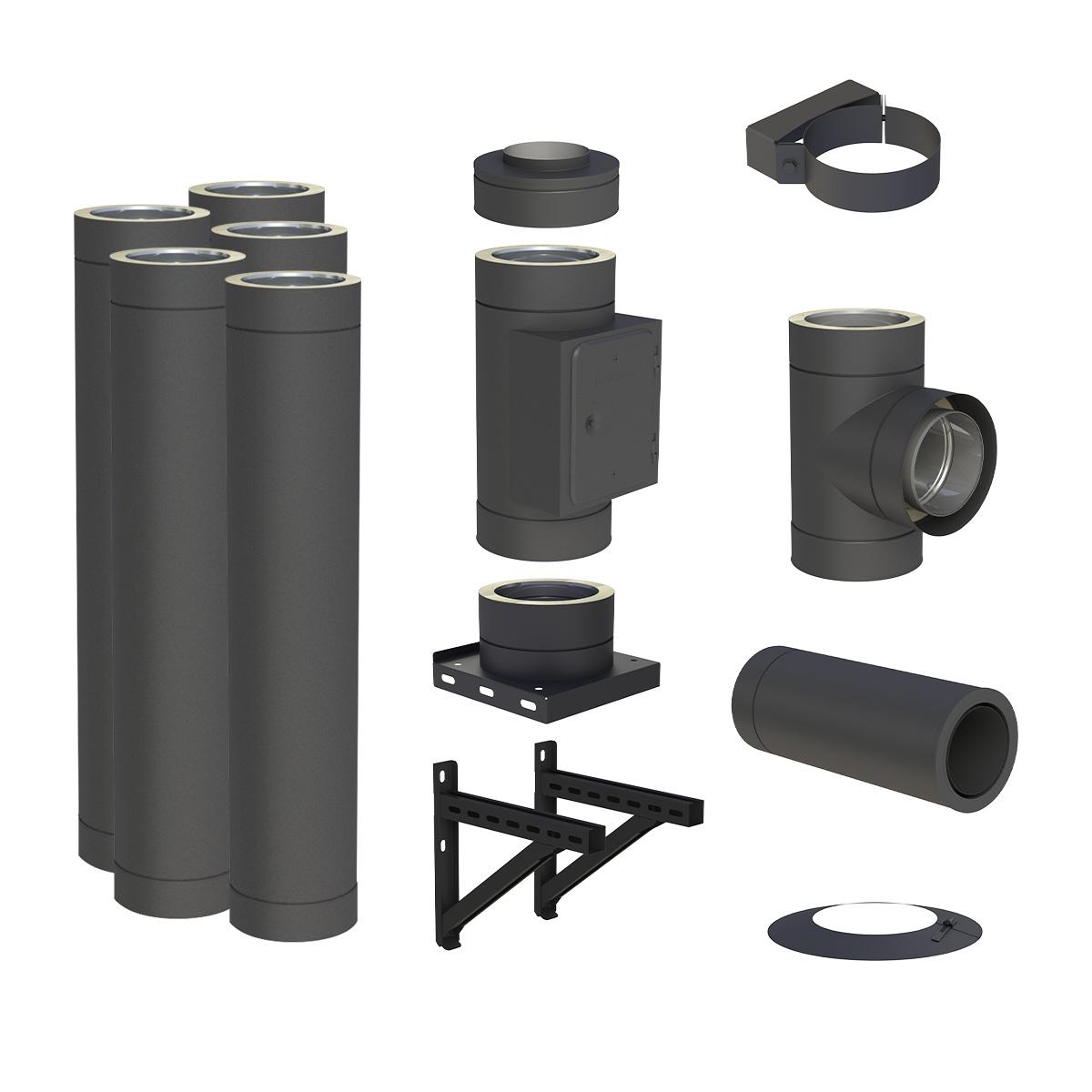 Jeremias DW-BLACK – 6 m Komplettbausatz für einen doppelwandigen Edelstahlschornstein