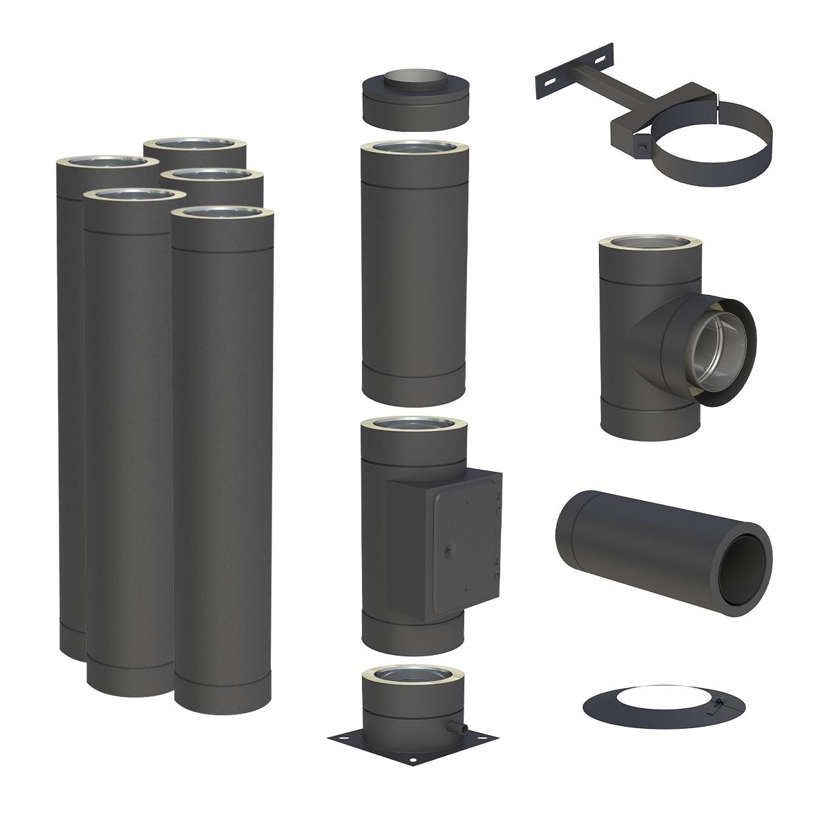 Jeremias DW-BLACK – 8 m Komplettbausatz für einen doppelwandigen Edelstahlschornstein