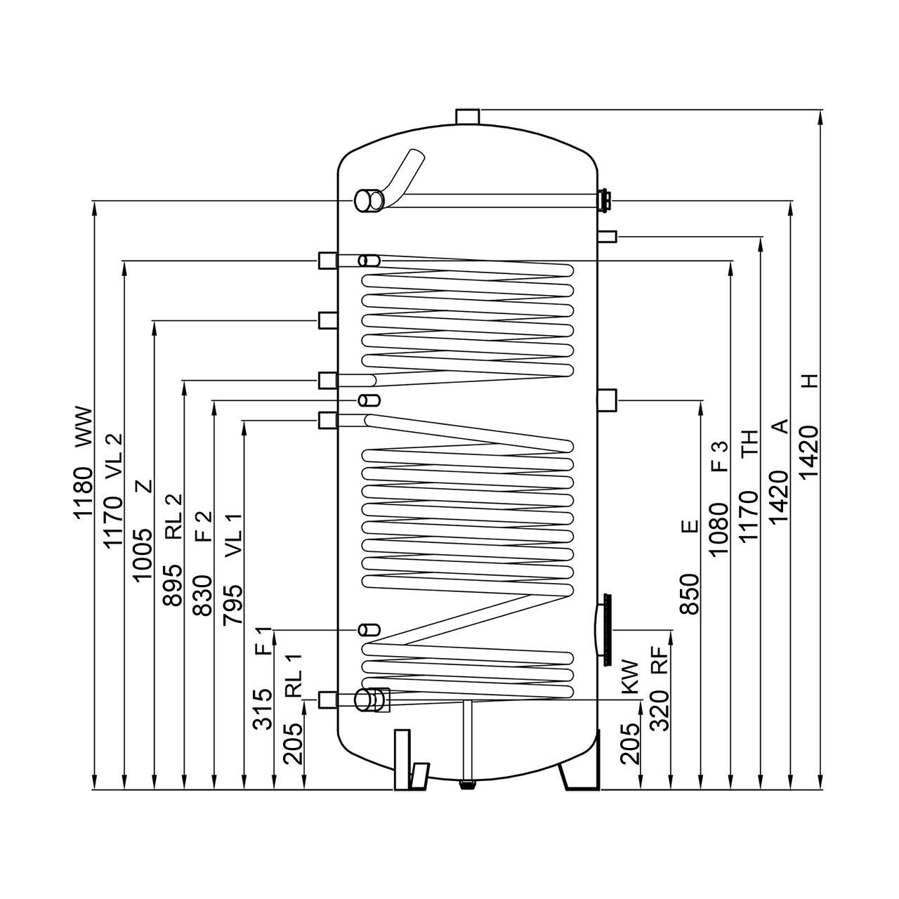 - (ohne Abb.) 1x Solarspeicher TWL Typ SO 300 Liter *, mit zwei Wärmetauschern
