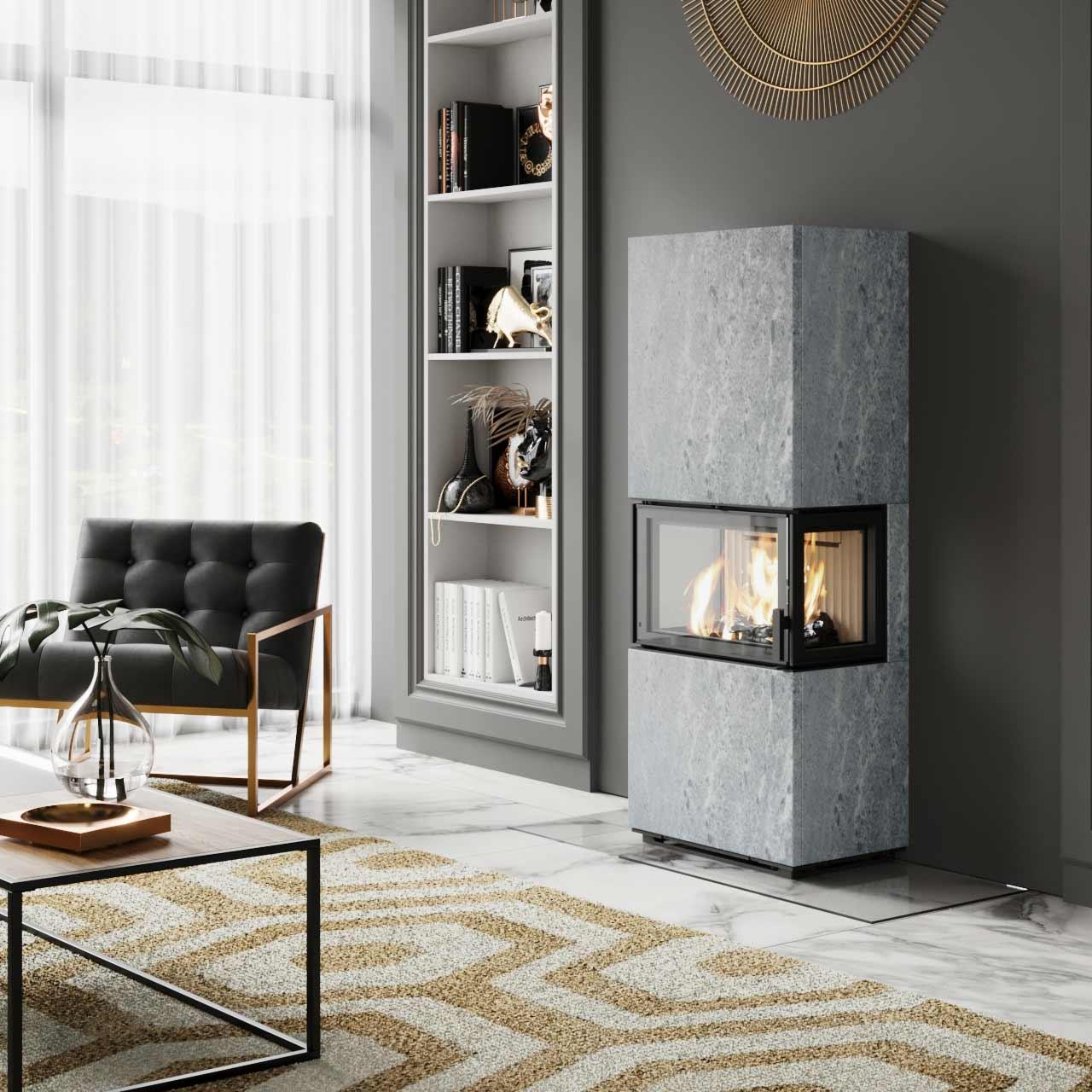 - verkleidet mit wunderschönen, wärmespeichernden Specksteinen