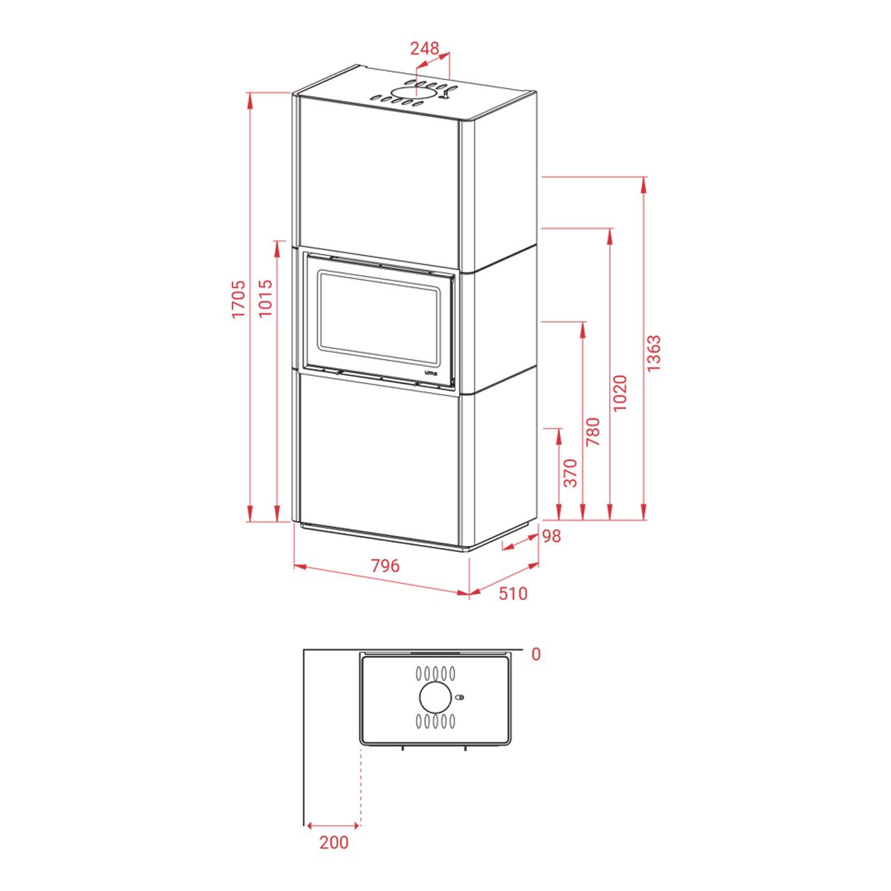 - Maße: H1705/B796/T510 mm