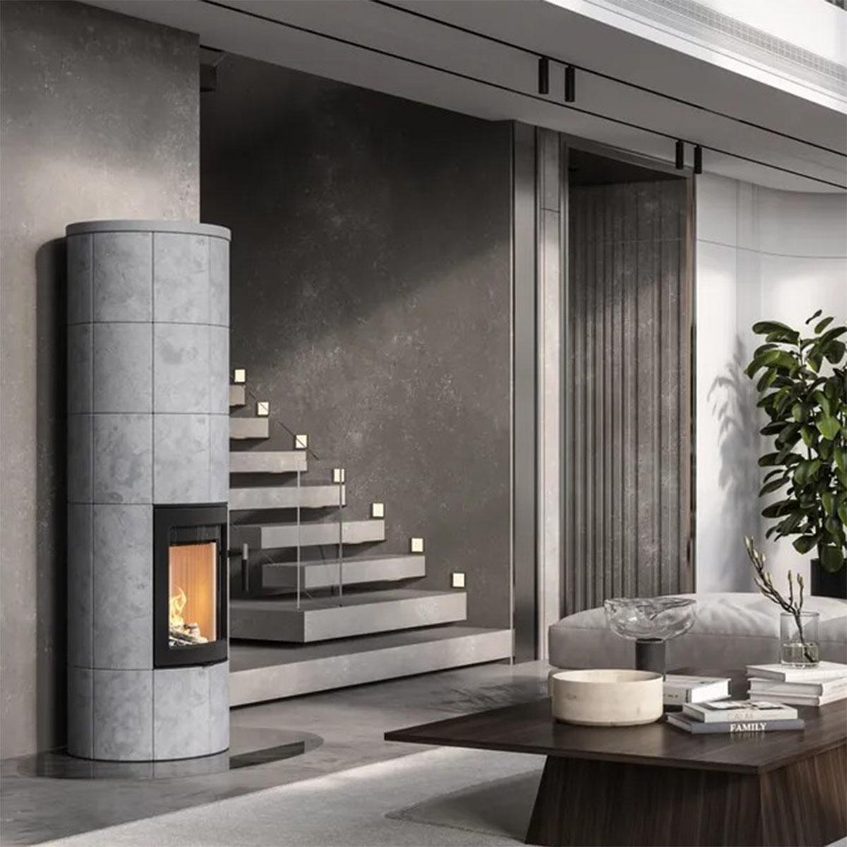 - wählbare Feuerraumtür in Schwarz, Grau oder Glas