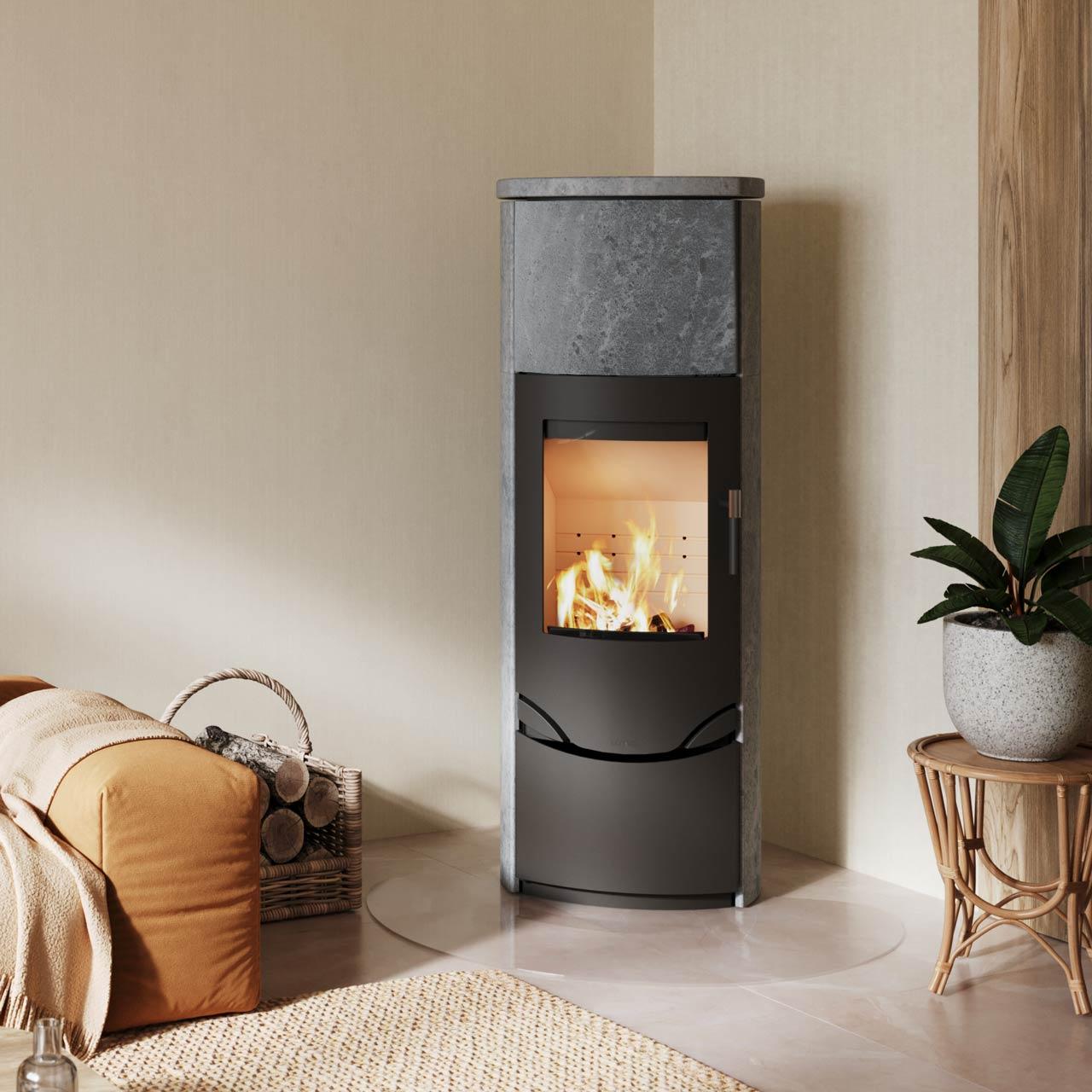 Verkleidet ist dieser Ofen ist mit Speckstein, der für seine außergewöhnliche Fähigkeit bekannt ist, Wärme zu speichern und langsam wieder abzugeben. Speckstein ist zudem sehr widerstandsfähig und sorgt für eine angenehme Strahlungswärme im Raum. Durch seine natürliche Entstehung erhält jeder Kaminofen eine einzigartige und attraktive Optik.Merkmale: