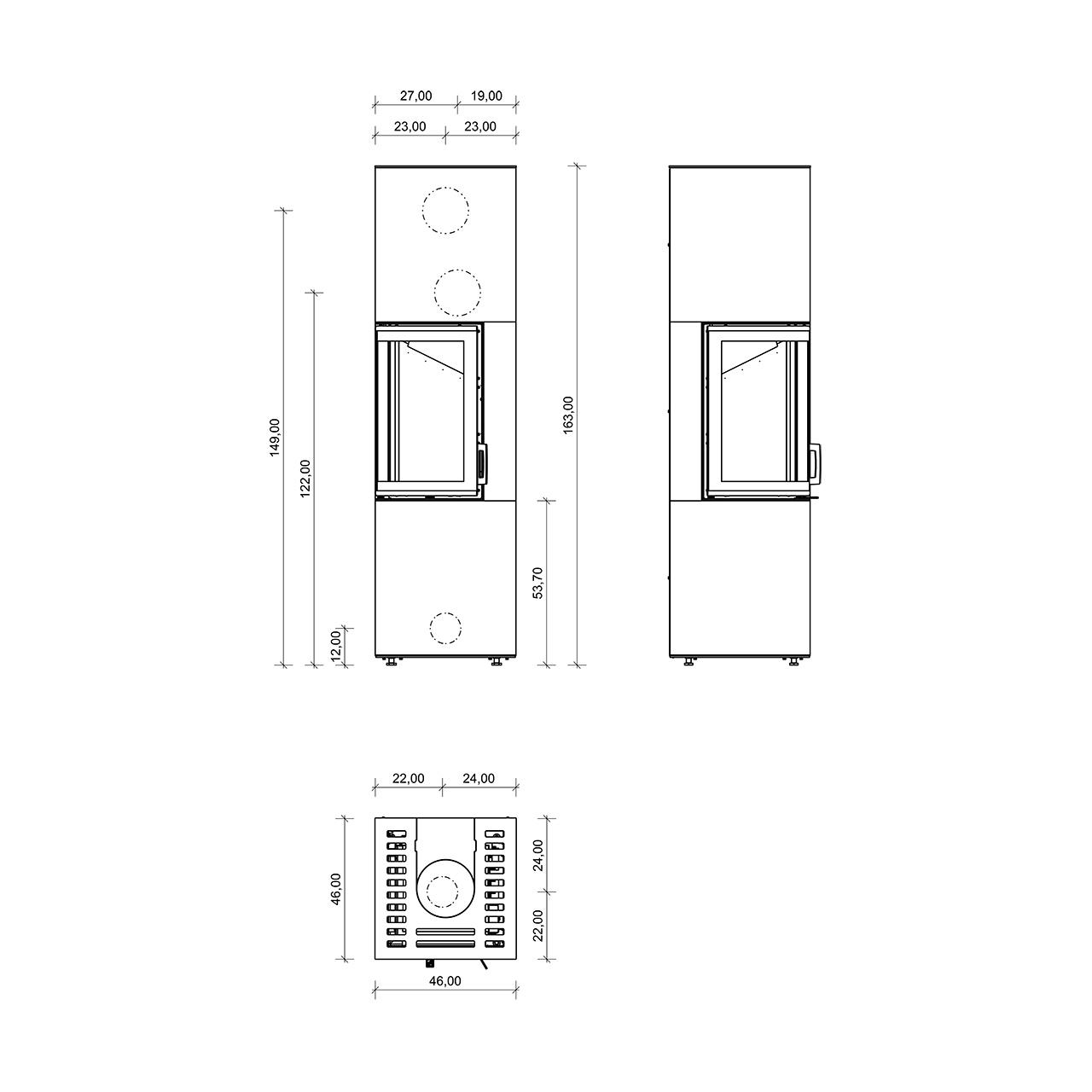 - 3-seitig, besitzt in der Basis-Version eine dreiseitige Natursteinhülle in U-Form. Die Rückseite des Ofens ist in hochwertigem Stahl ausgeführt.