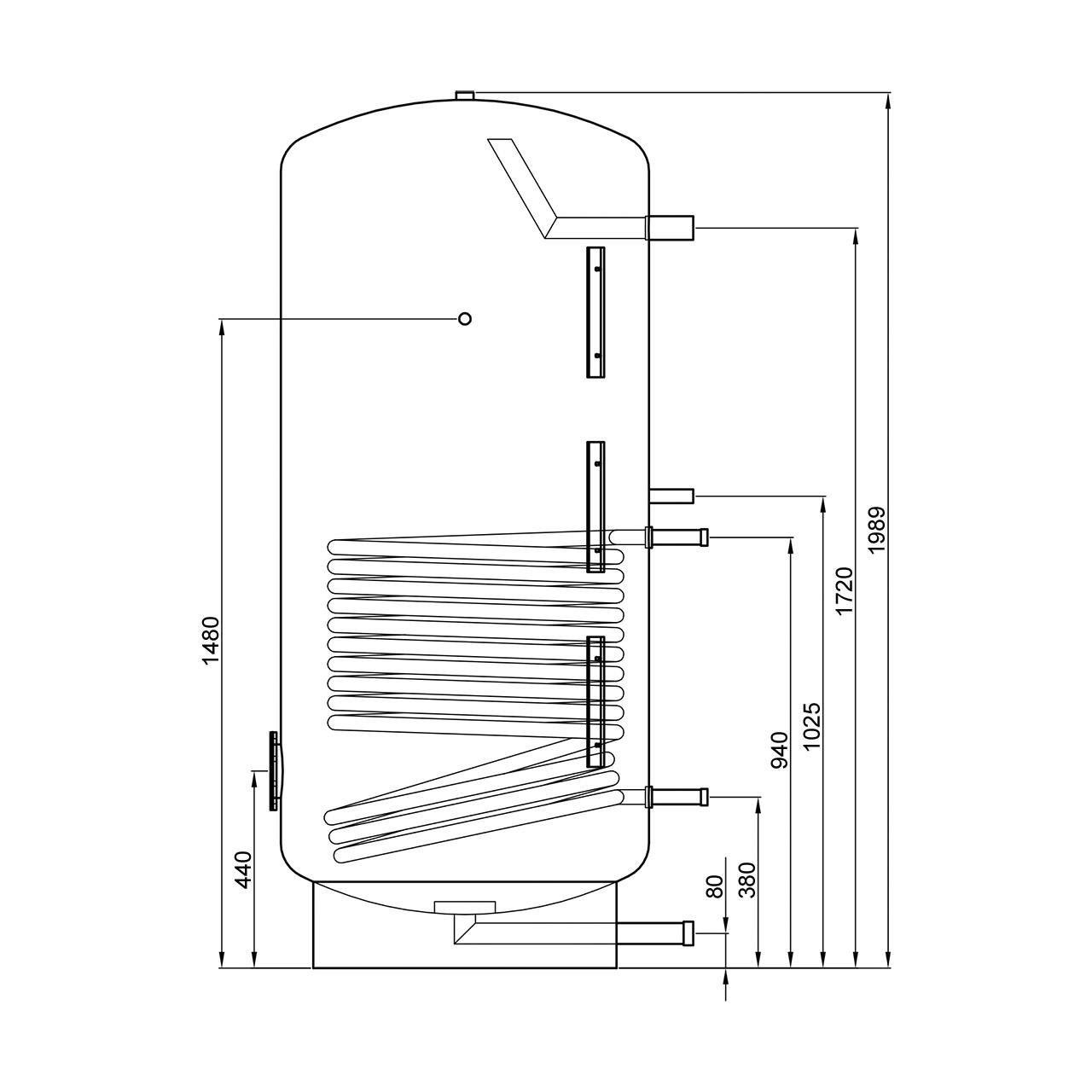 - Edelstahl-Standspeicher mit einem Wärmetauschern
