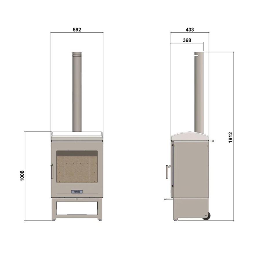 | Höhe | 1008 mm (ohne Schornstein) 1912 mm (mit Schornstein) |