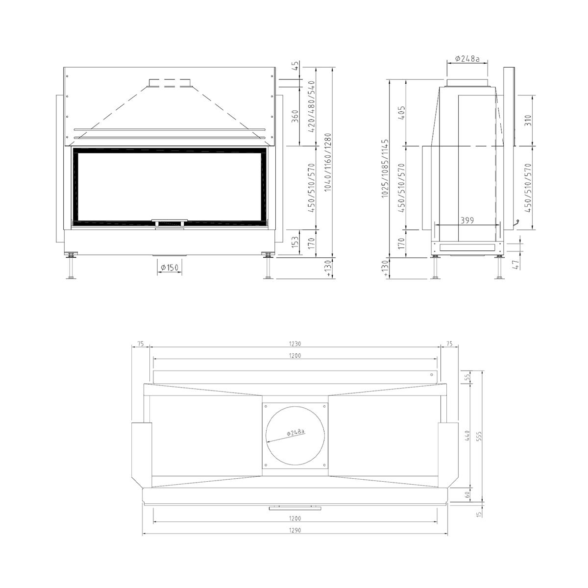 | Verbrennungsanschluss | Ø 150 mm nach links oder rechts - optional Ø 150 mm nach unten |