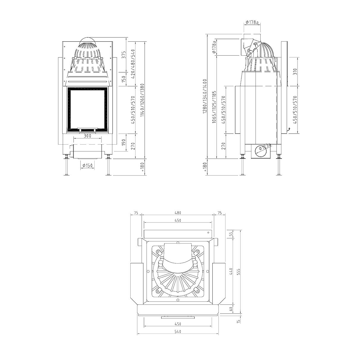 | Verbrennungsanschluss | Ø 125 mm - optional Ø 150 mm |