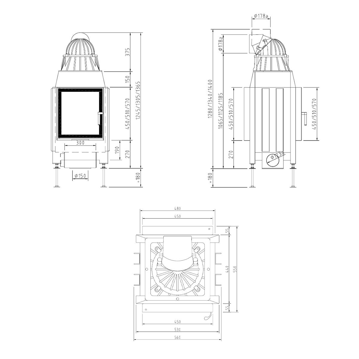 | Verbrennungsanschluss | Ø 125 mm - optional Ø 150 mm |