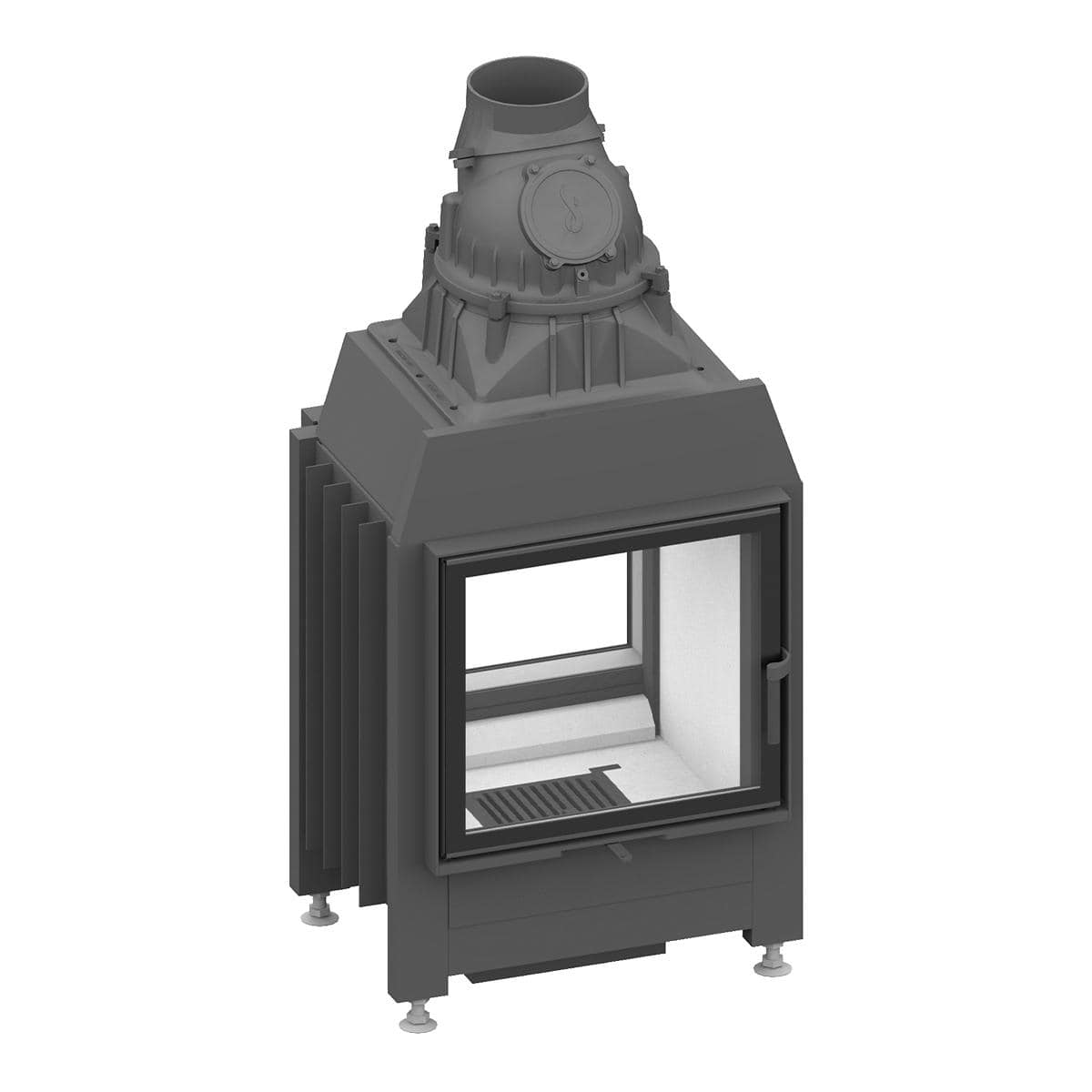 - Brennraumauskleidung: Schamotte Weiß, Schamotte Anthrazit oder Schamotte Anthrazit/Brennraumwand aus Gusseisen