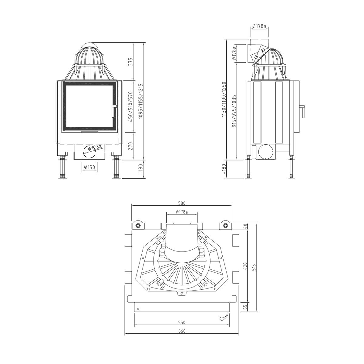 | Verbrennungsanschluss | Ø 125 mm - optional Ø 150 mm |