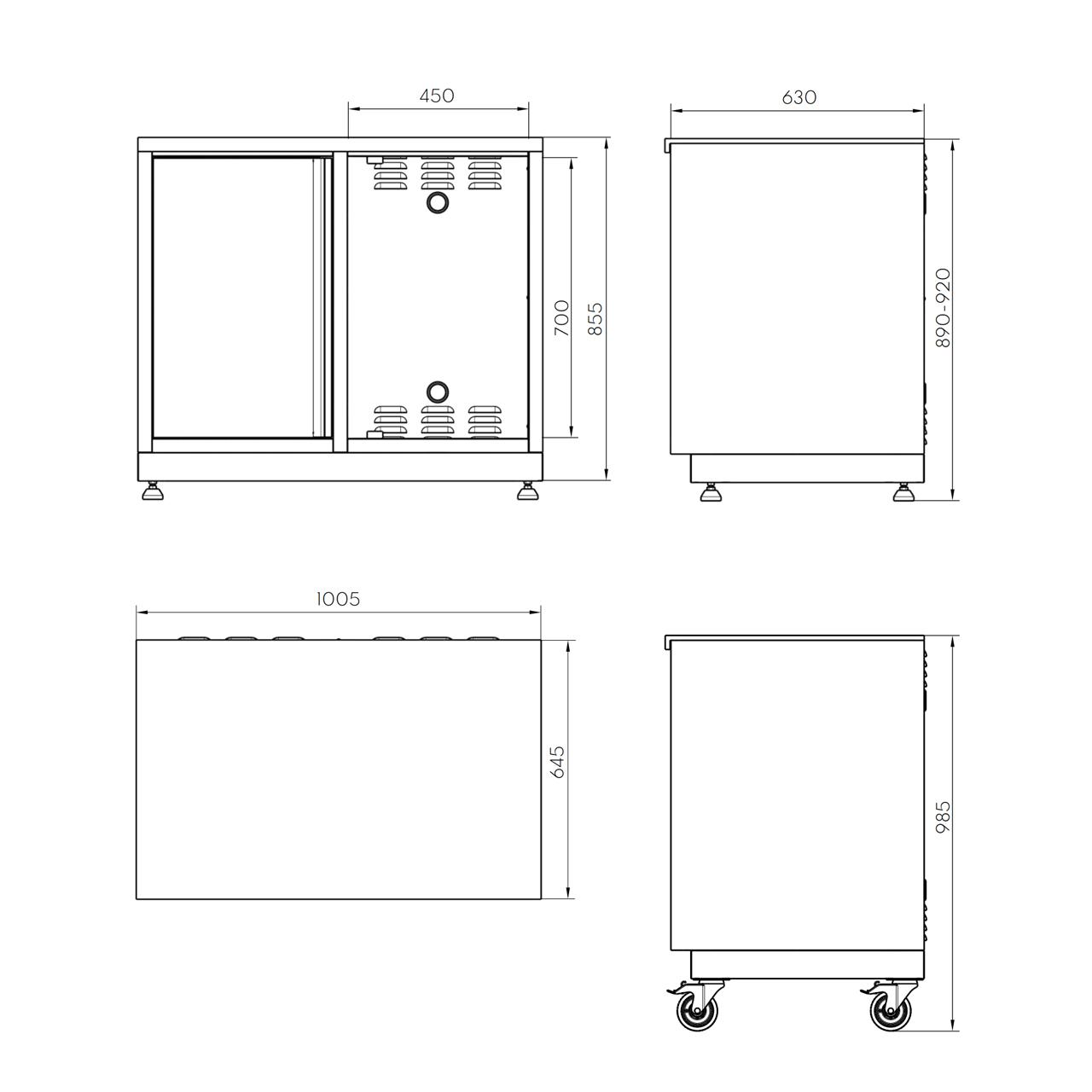 Das vivandio quub Doppelschrank Modul ist die ideale Ergänzung für Ihre Outdoorküche. Mit diesem praktischen Küchenmodul schaffen Sie nicht nur zusätzliche Arbeits- und Ablageflächen, sondern auch mehr Stauraum. Es besteht aus zwei Schrankhälften und lässt sich perfekt mit einem Standgrill kombinieren. Der zusätzliche Stauraum ist besonders nützlich, um Ordnung zu halten und Ihre Utensilien sicher zu verstauen. Durch die durchdachte Gestaltung können Sie das Modul auch hervorragend als Abstellmöglichkeit für Gasflaschen nutzen. Schläuche und andere Installationen können problemlos durch die perforierten Öffnungen im Schrank verlegt werden, was für eine saubere und sichere Handhabung sorgt.