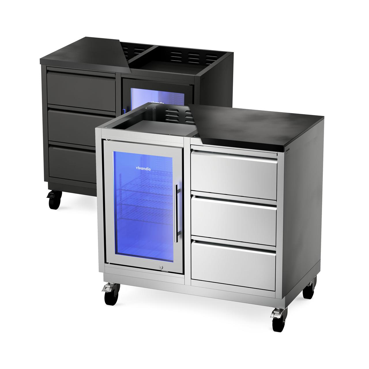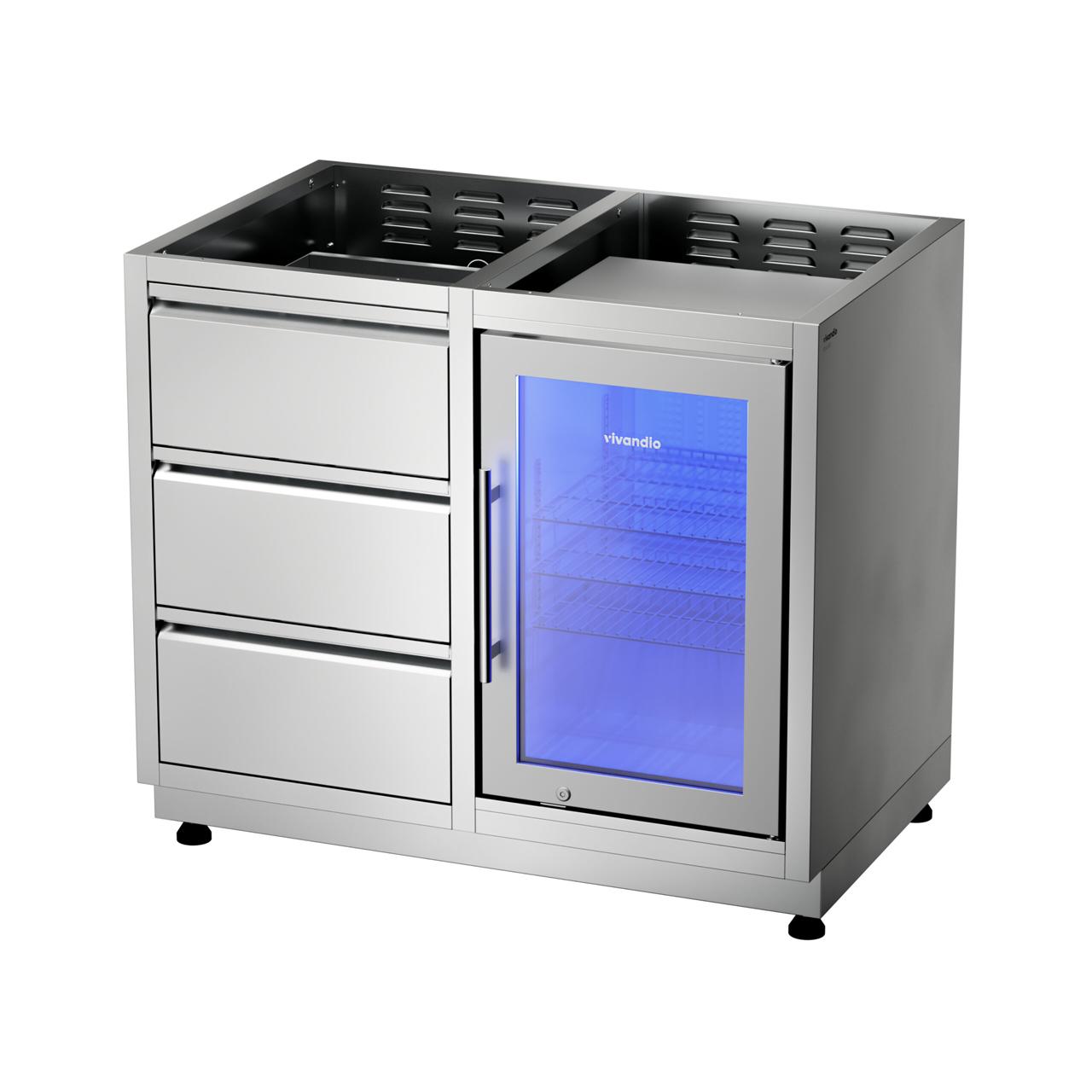 Ein besonderes Highlight ist das praktische Schubladensystem mit drei geräumigen Schubladen, die zusätzlichen Stauraum für Grillutensilien, Zutaten oder anderes Küchenzubehör bieten. So haben Sie alles griffbereit und organisiert – sowohl im Kühlschrank als auch in den Schubladen.