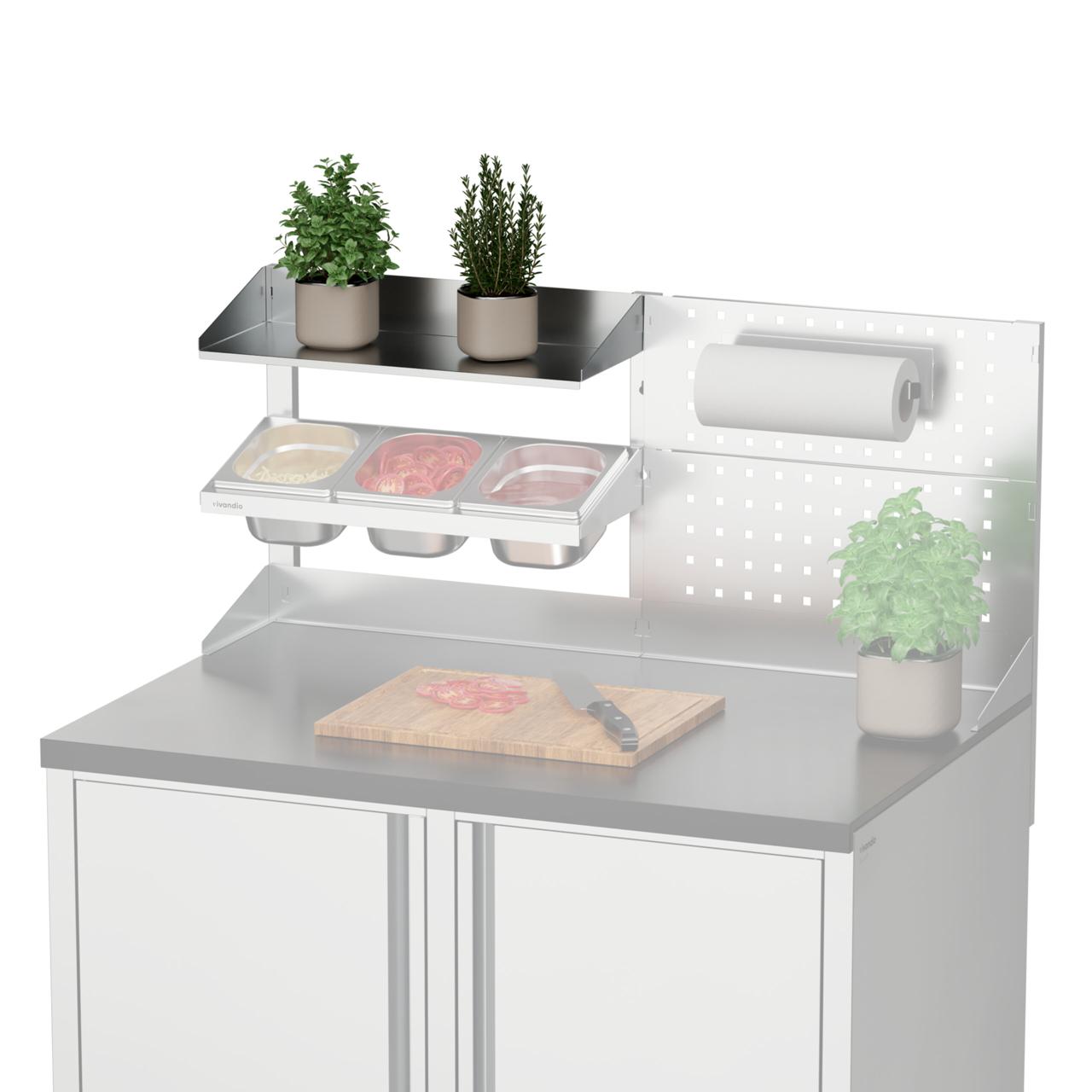 • Flexibel montierbar: Wahlweise als zweistöckige Rückwand oder als Arbeitsplattenumrandung
