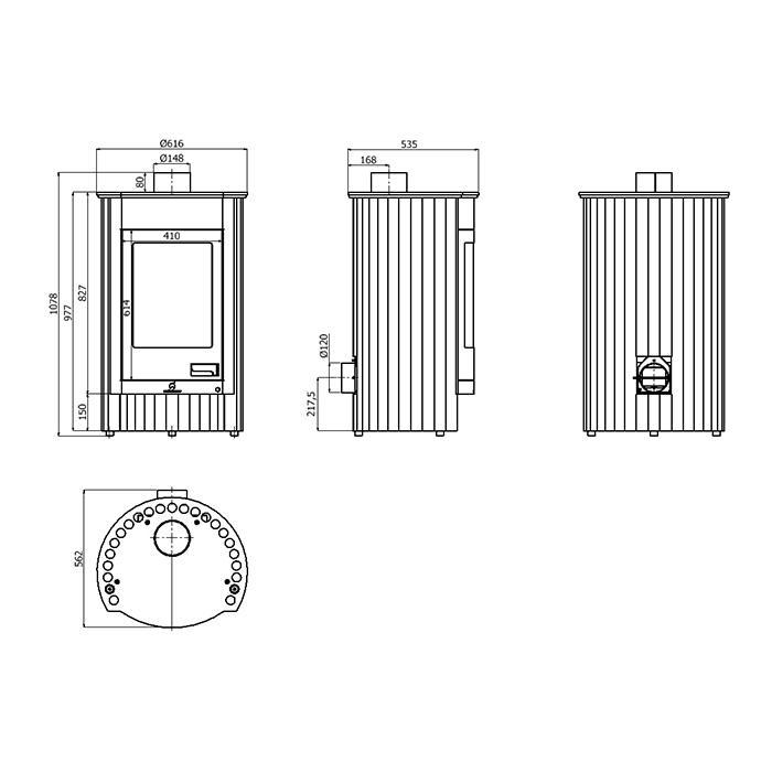 - Rauchrohranschluss: Ø 150 mm